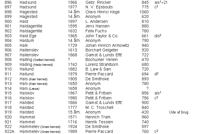 Kirkeklokker i Danmark, alfabetisk efter kirke/stednavne Kommentar til oversigten over kirkeklokker i Danmark |
